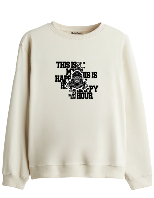 Happy Hour Baskılı Bisiklet Yaka Sweatshirt