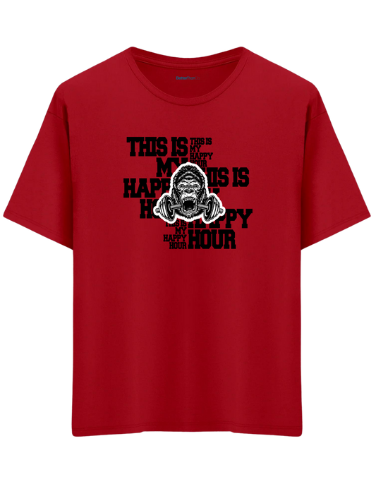Happy Hour Baskılı Bisiklet Yaka Oversize T-shirt