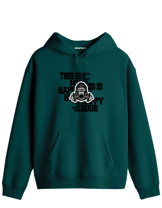 Happy Hour Baskılı Unisex Kapüşonlu Yaka Hoodie
