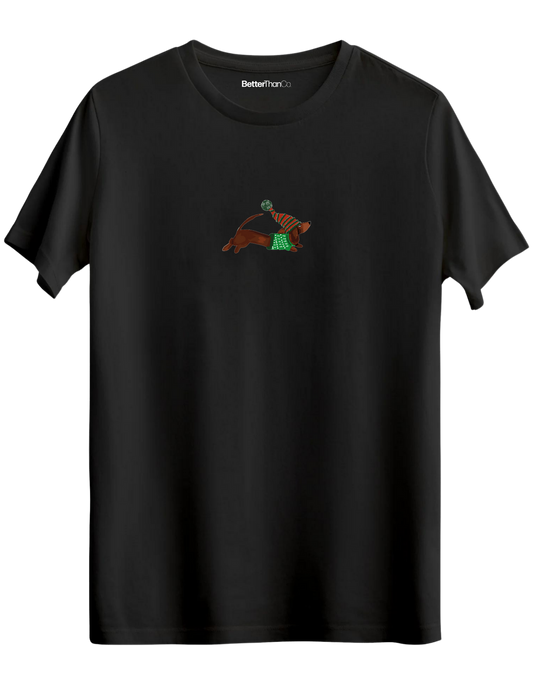 Santa Sausage Dog Baskılı Bisiklet Yaka Regular T-shirt