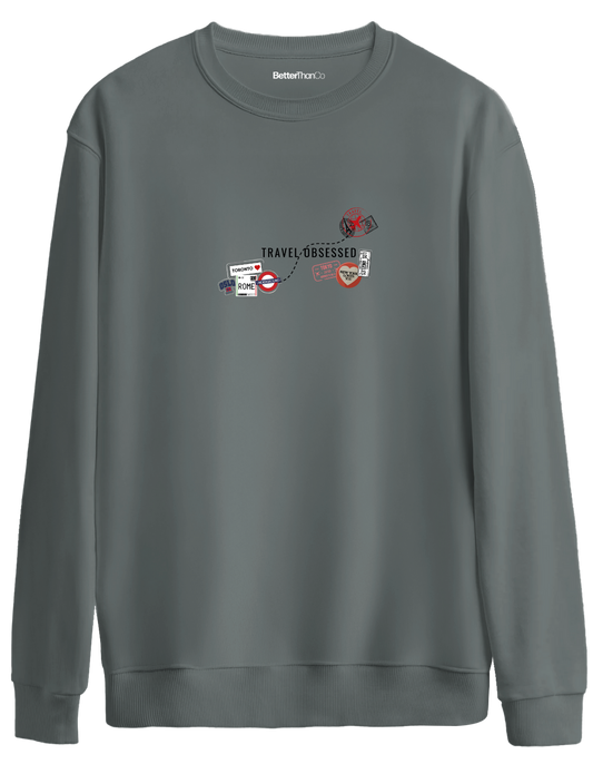 Travel Obsessed Baskılı Bisiklet Yaka Oversize Sweatshirt