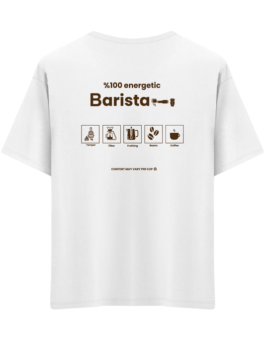 Barista Baskılı Bisiklet Yaka Oversize T-shirt