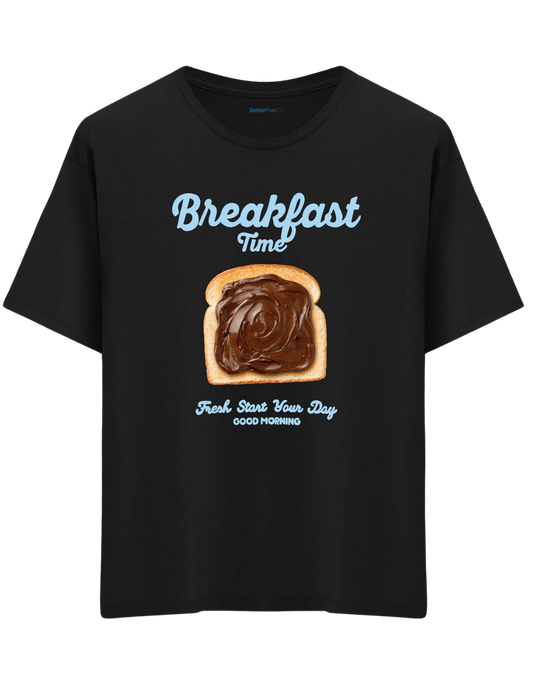 Breakfast Time Baskılı Bisiklet Yaka Oversize T-shirt