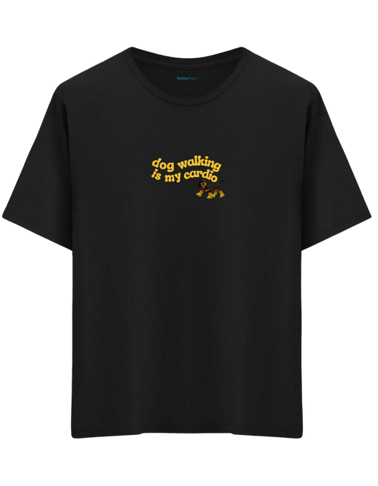 Dog Walking Baskılı Bisiklet Yaka Oversize T-shirt